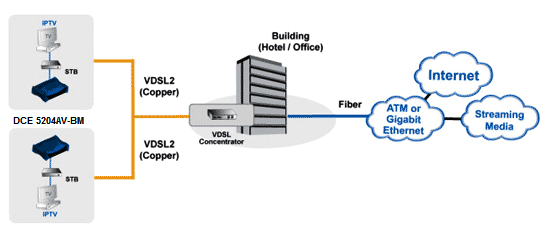 Deployment scenario for VDSL using FTTx (DCE 5204V-BM – VDSL2 Bridge Modem)